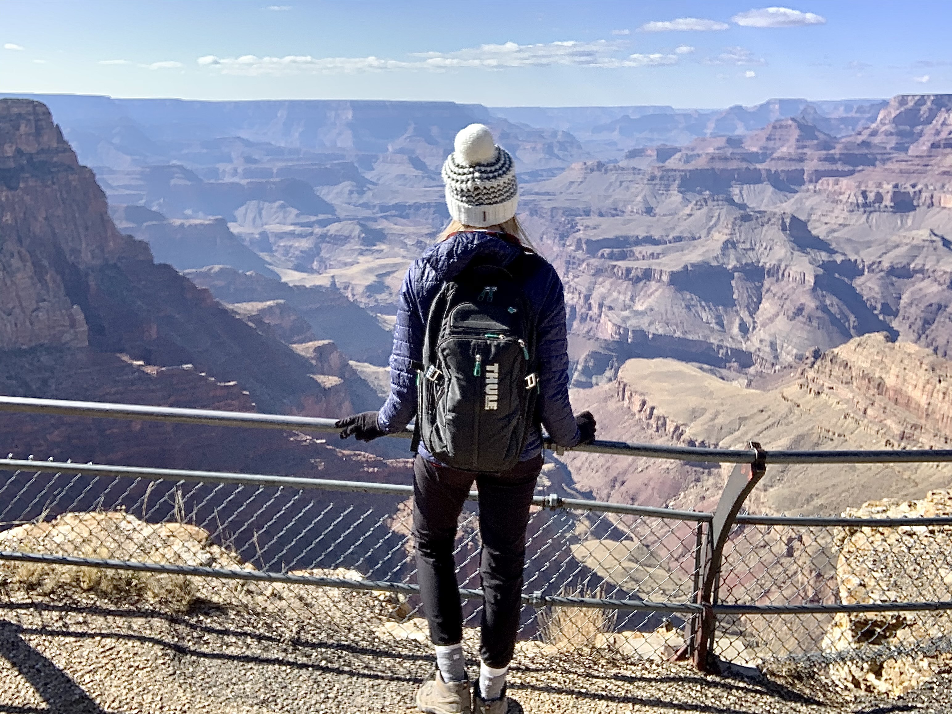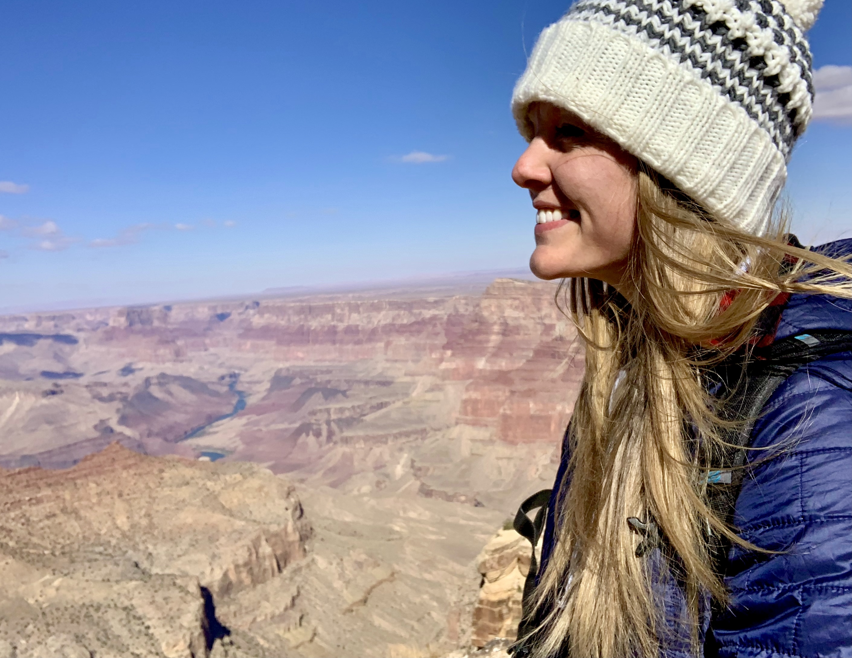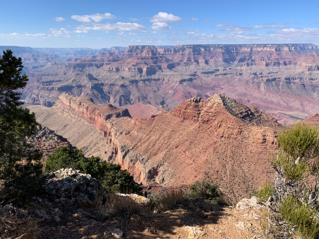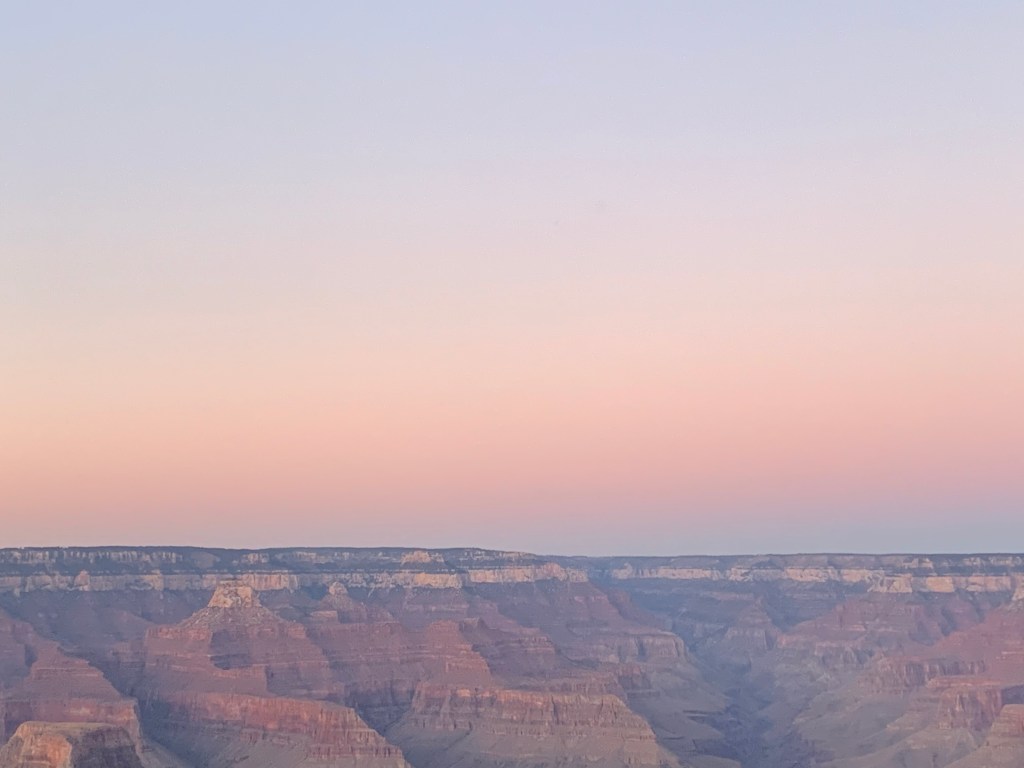 This is an about 25-mile road extending eastward along the rim from Grand Canyon Village. The drive feels like a journey through a Headspace meditation – Tall pines line both sides of the road, and the canyon peeks through on occasion as you go. This particular day, the sky is blue, the sunlight kisses the trees, the breeze is cool, and Ben Howard and friends sing sweet serenades through Spotify as I drive. My mind wanders. I am reminded of the Uber driver who shuttled me to the airport two days ago. A kind man in his 60s, he had recounted to me the story of his family as we drove. He grew up in Southeast Asia and his family had sought asylum in the United States after the Vietnam War, which his father served in. He shared about his love for travel, about how important it is in life to see new places, explore new spaces, meet new people who are different from you. We heartily agree on this. He had tales from the urban center of Abu Dhabi, the forests of southern China, the rushing Niagara Falls, and more. We talked about how no matter what chaos or confusion pervade the news, we are grateful to have a wildly beautiful world to appreciate, learn about, and take care of. We don’t always have to go far – there are beautiful moments and places and spaces in each seemingly ‘ordinary’ day – but what a gift it can be to adventure more broadly every now and again. This entire trip feels like one great, big, unexpected gift.