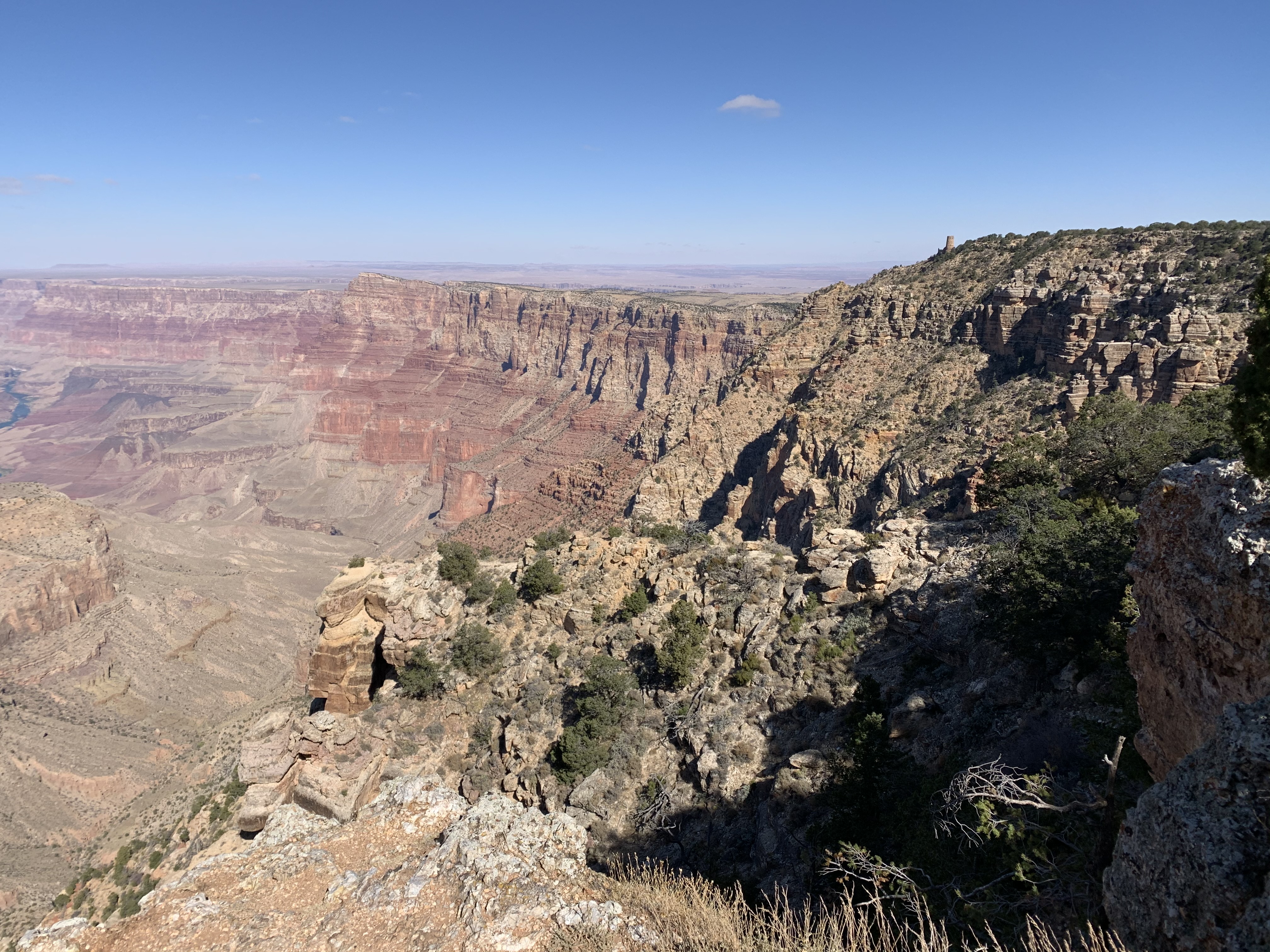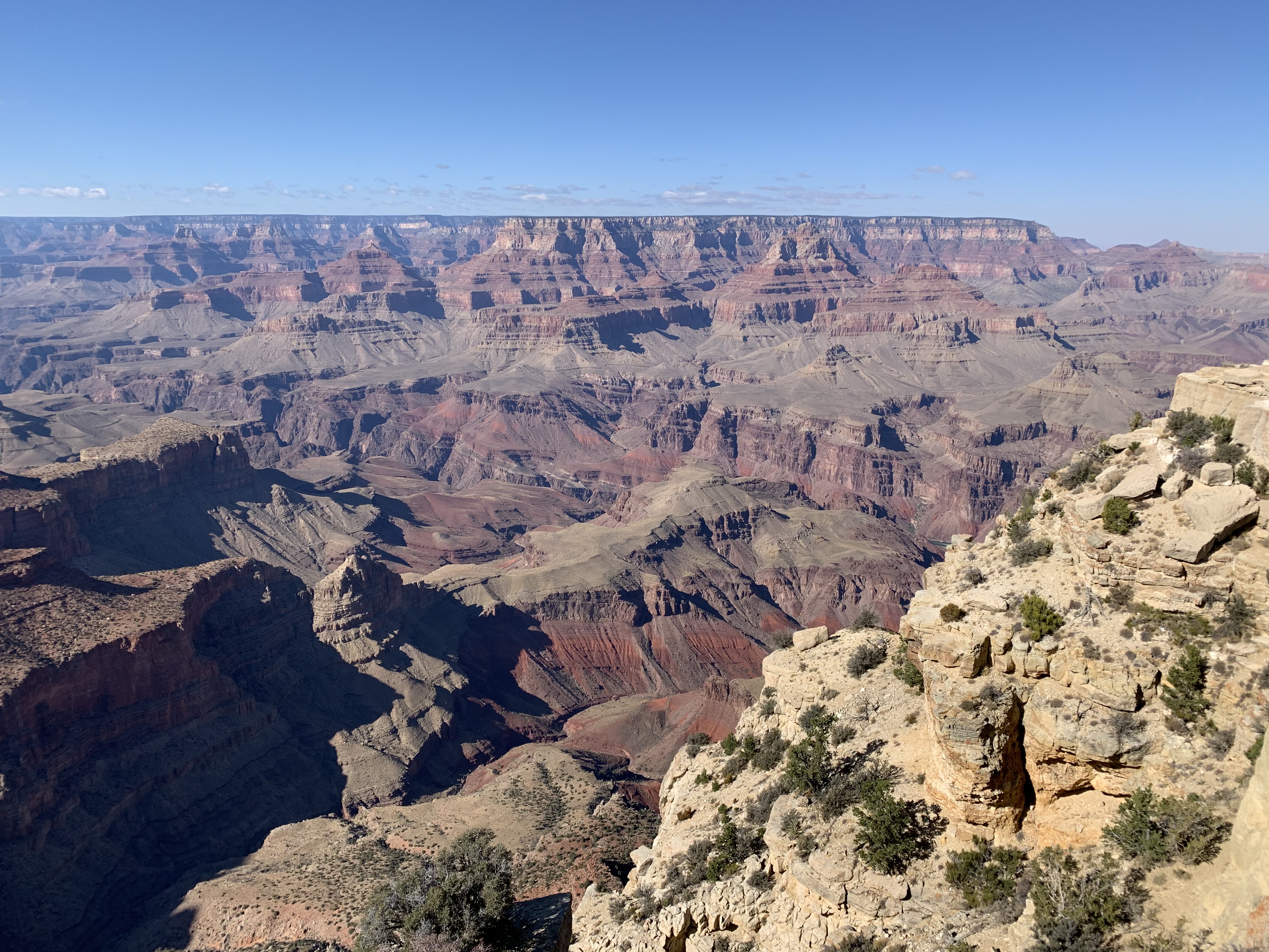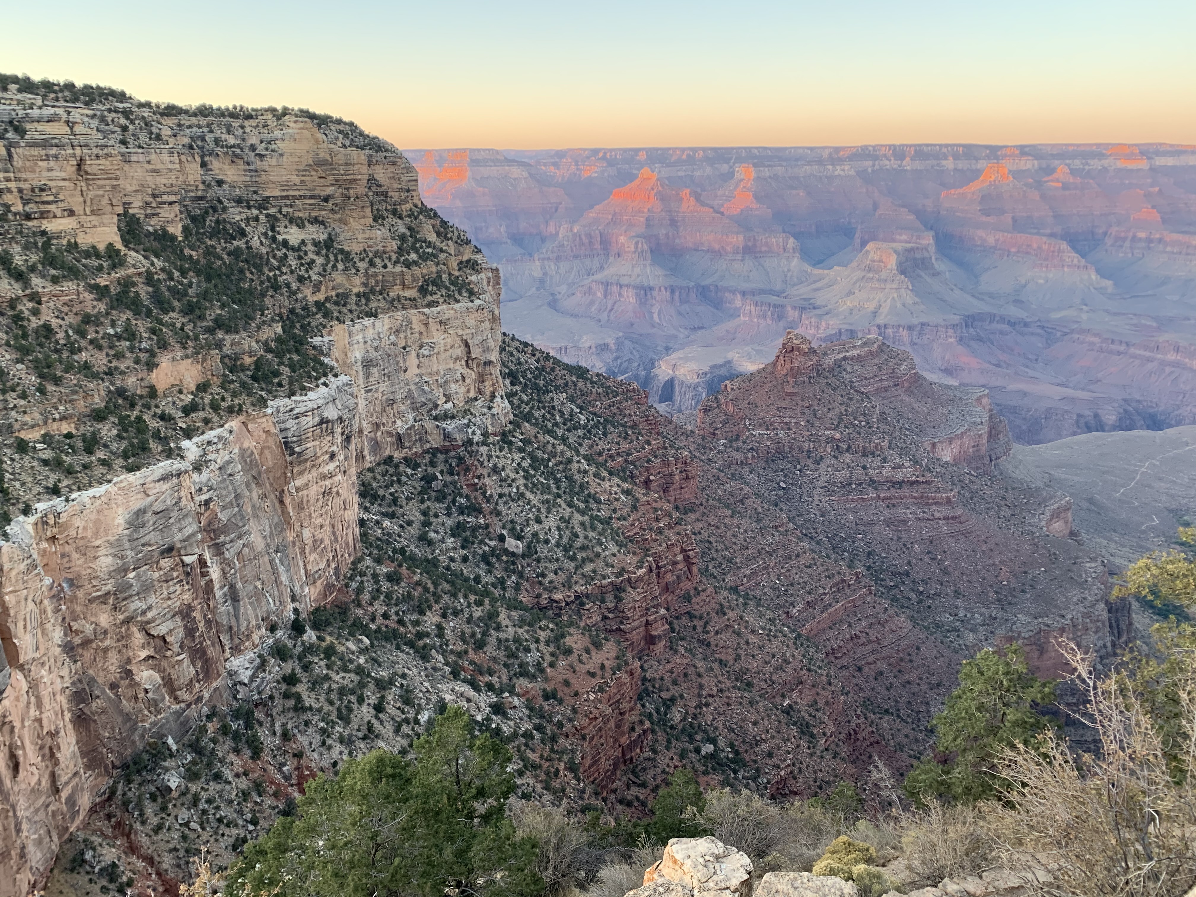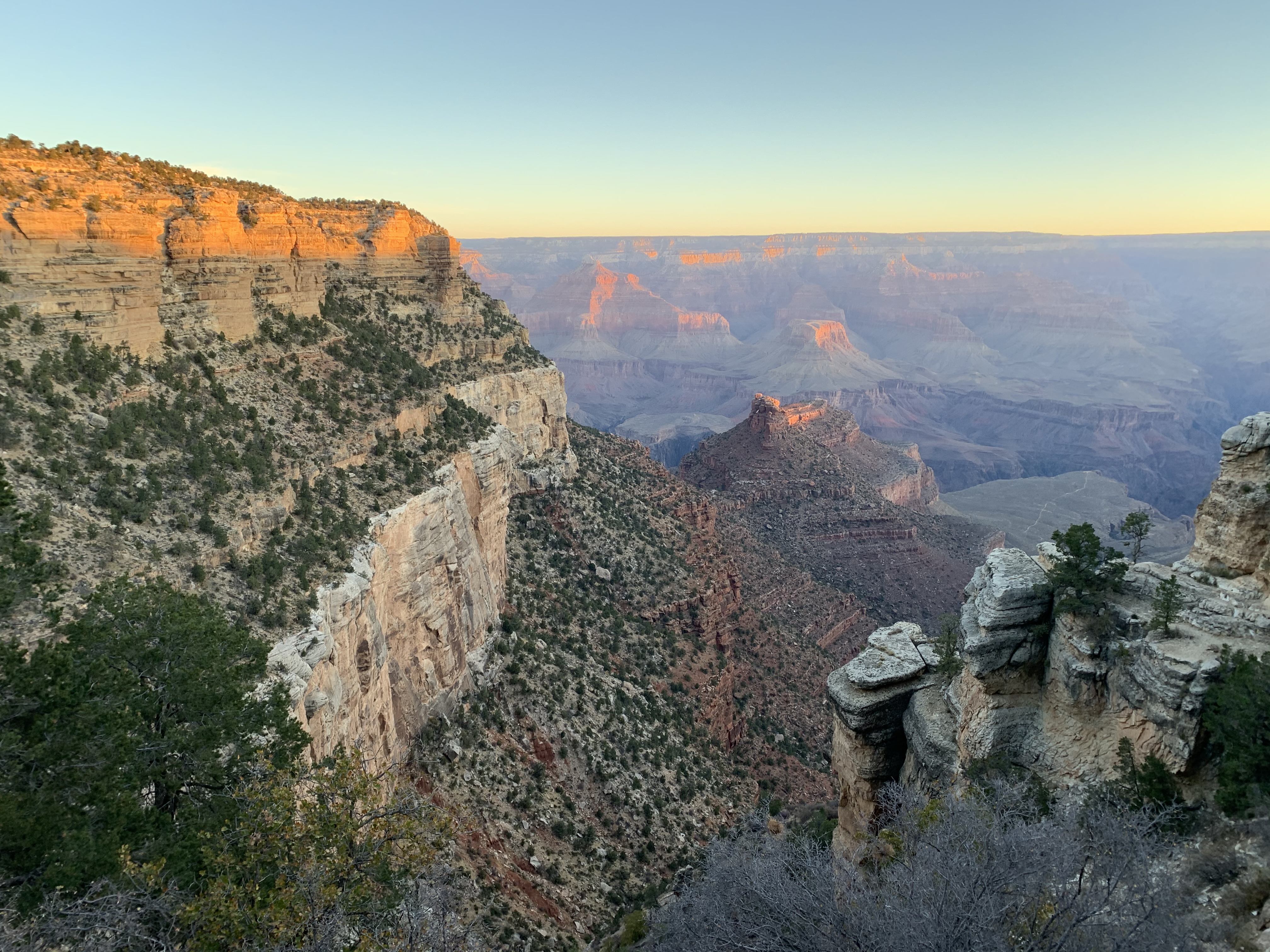 This is an about 25-mile road extending eastward along the rim from Grand Canyon Village. The drive feels like a journey through a Headspace meditation – Tall pines line both sides of the road, and the canyon peeks through on occasion as you go. This particular day, the sky is blue, the sunlight kisses the trees, the breeze is cool, and Ben Howard and friends sing sweet serenades through Spotify as I drive. My mind wanders. I am reminded of the Uber driver who shuttled me to the airport two days ago. A kind man in his 60s, he had recounted to me the story of his family as we drove. He grew up in Southeast Asia and his family had sought asylum in the United States after the Vietnam War, which his father served in. He shared about his love for travel, about how important it is in life to see new places, explore new spaces, meet new people who are different from you. We heartily agree on this. He had tales from the urban center of Abu Dhabi, the forests of southern China, the rushing Niagara Falls, and more. We talked about how no matter what chaos or confusion pervade the news, we are grateful to have a wildly beautiful world to appreciate, learn about, and take care of. We don’t always have to go far – there are beautiful moments and places and spaces in each seemingly ‘ordinary’ day – but what a gift it can be to adventure more broadly every now and again. This entire trip feels like one great, big, unexpected gift.