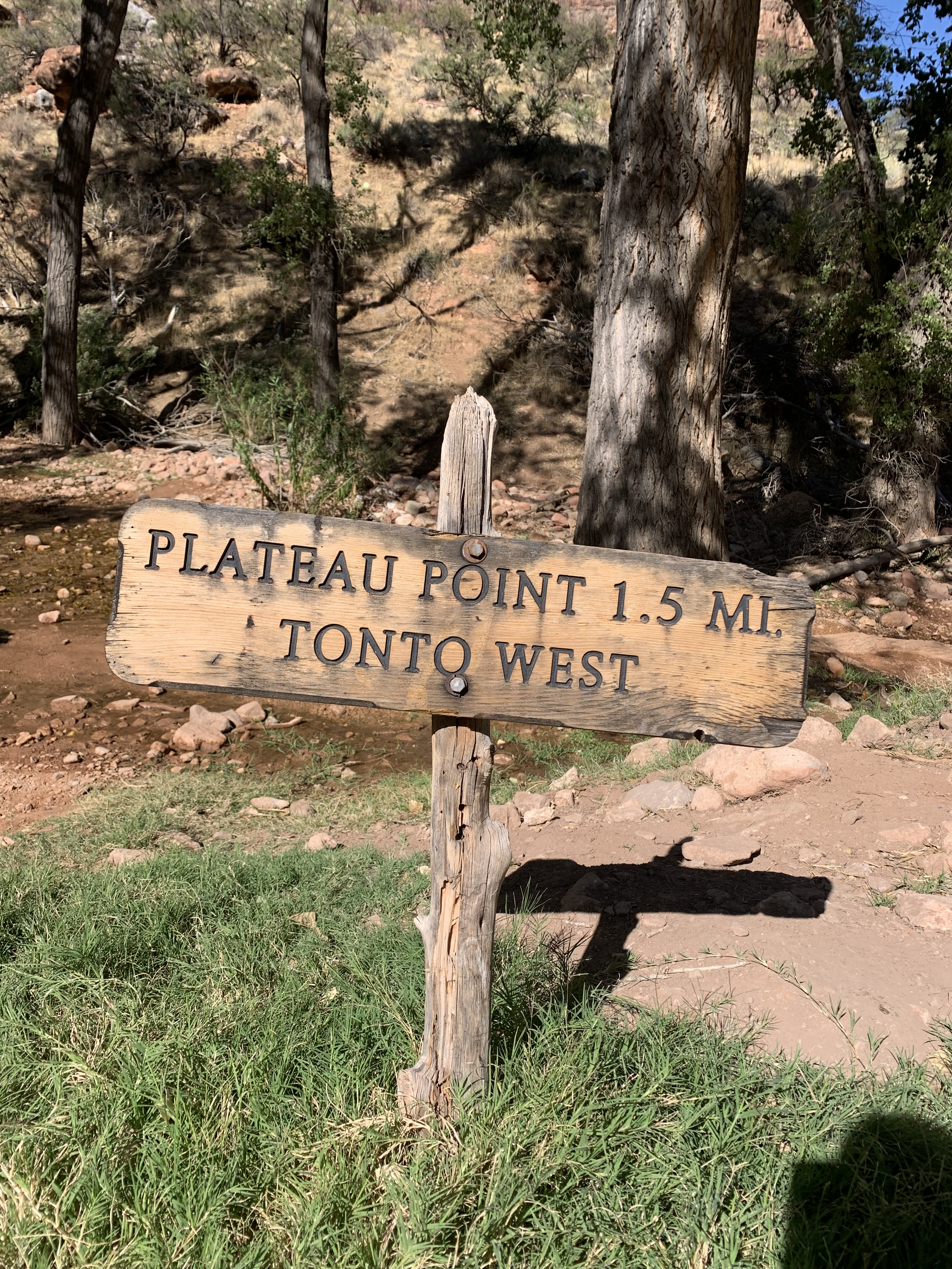 Indian Gardens is a sanctuary of trees, streams, and tranquility that represents a vastly different ecosystem from the rim above. I hear the trickling streams that descend like a thread from the canyon north. I close my eyes, take in the sound, and open them again. A deer is refreshing itself by the water, peaceful and at ease. The density of cacti, wildflowers, and deciduous trees is heightened in this sweet garden retreat. It is set up with benches, potable water, and a campsite for those who take multi-day journeys into and out of the canyon. From here, the trail forks, the left leading to Plateau Point, the right weaving toward the Colorado River and Bright Angel Campground. I veer left toward the sign indicating “Plateau Point”, and within minutes I find the trail to be relatively flat. My knees are grateful.