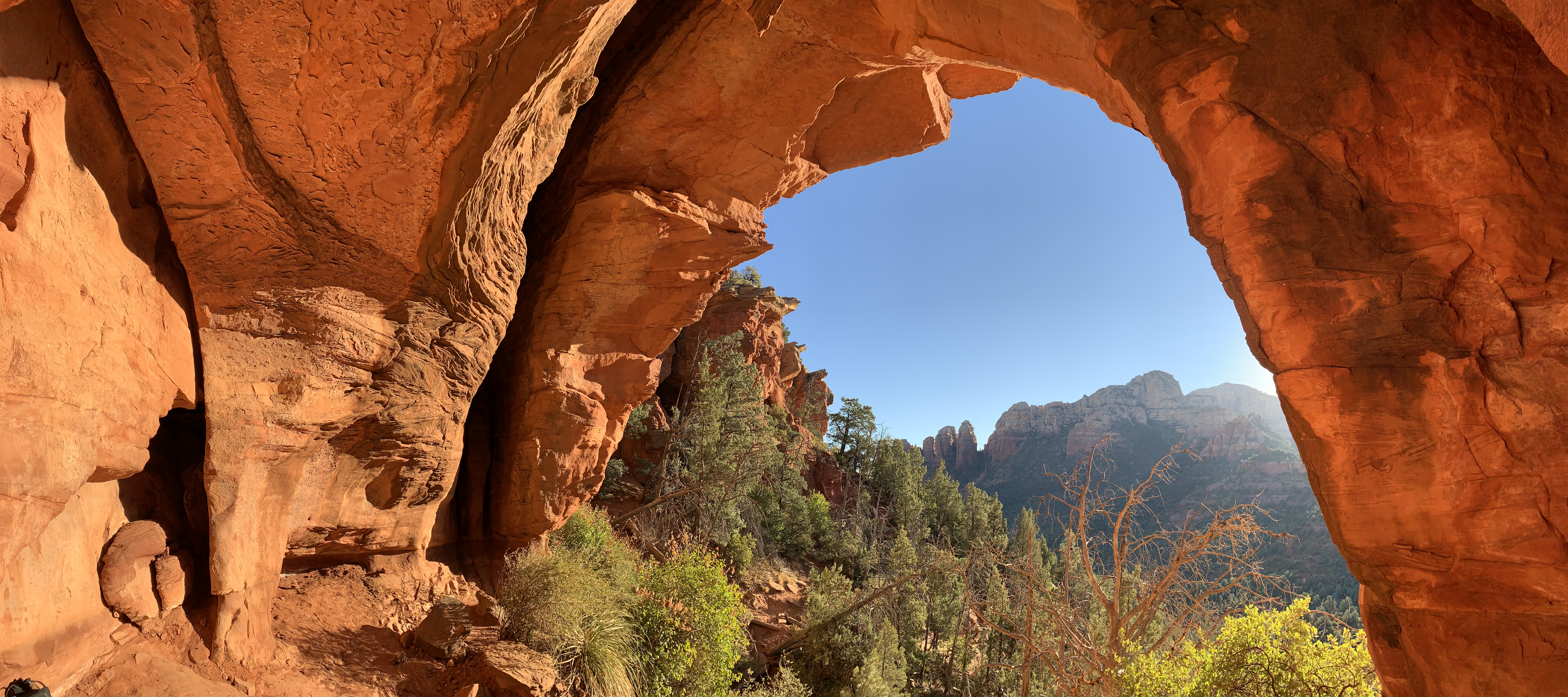 There are caves somewhere along Soldier Pass, I learn from two fellow hikers as they head toward the direction that I came from. They were just exploring the caves and elatedly share that they could not recommend them more highly. But they say the caves a) are a fairly challenging upward climb, and b) would add another 25 minutes or so to the hike. I do some mental math – If I hurry, I can make it and still finish the hike in time. The spur trail upward is hard to find, but myself and two other hikers locate it together. And we climb. And scramble. And climb some more. Over trees and up slippery, rocky slants. And then alas – We made it! And oh. my. word. I cannot believe my eyes.