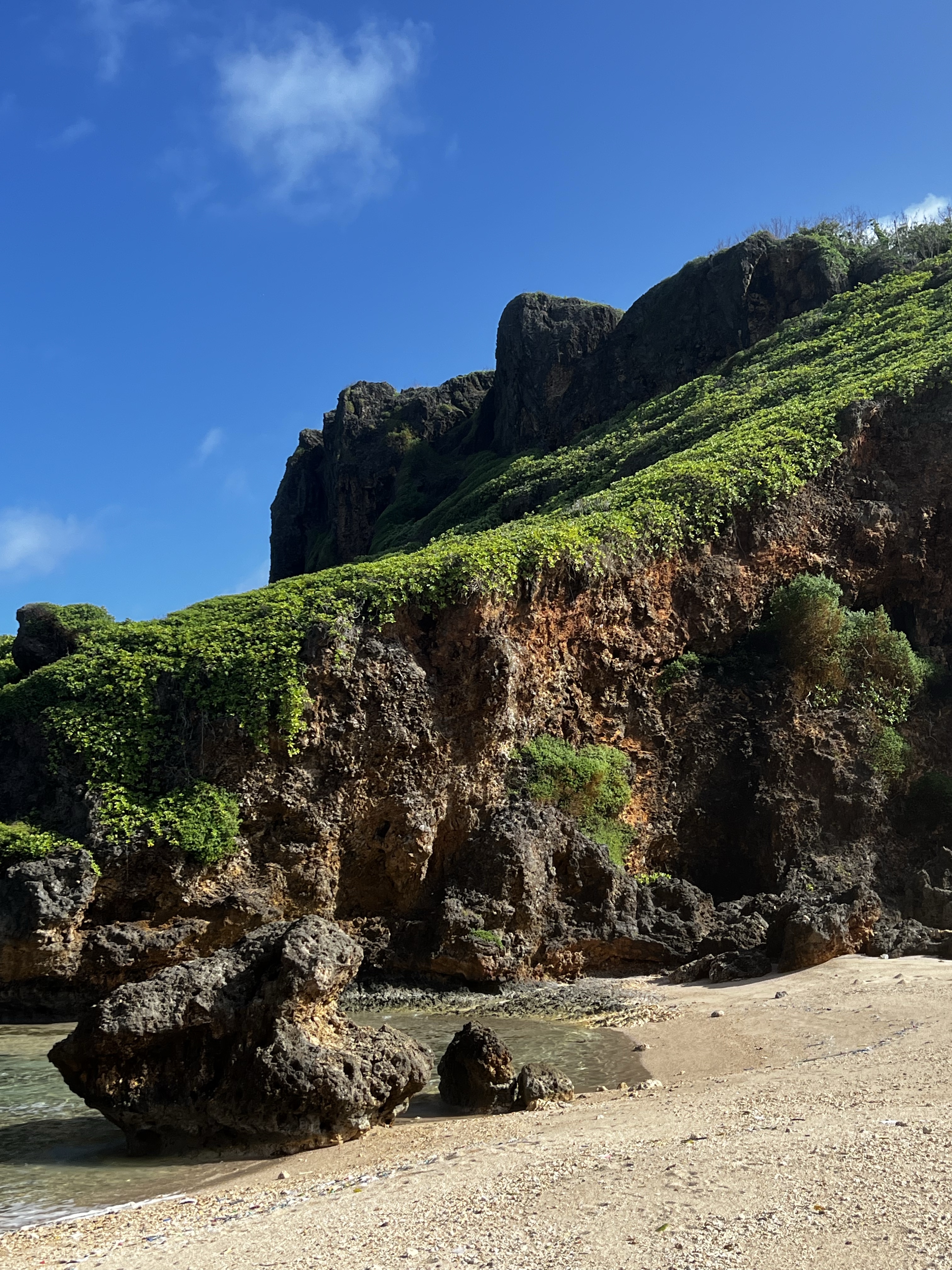 – Lounging on the beach at Tumon Bay allowed for lots of people-watching, as snorkelers, divers, and family and friend groups enjoyed the beautiful tropical afternoon at the base of a small cliff. I went for a dip in the still water, then leisurely pressed ‘play’ on my audiobook and closed my eyes, relishing the warmth of the sun on my face.