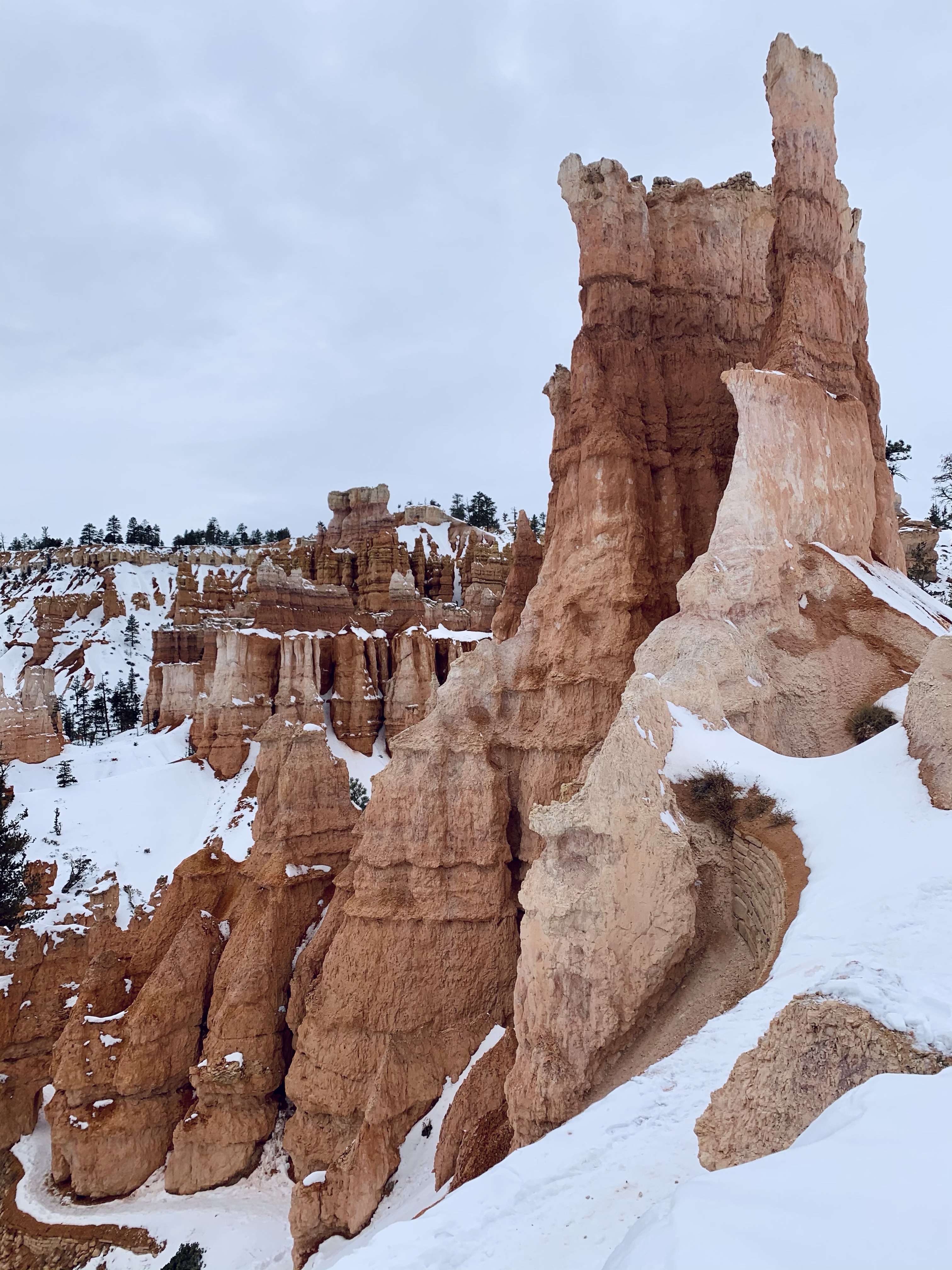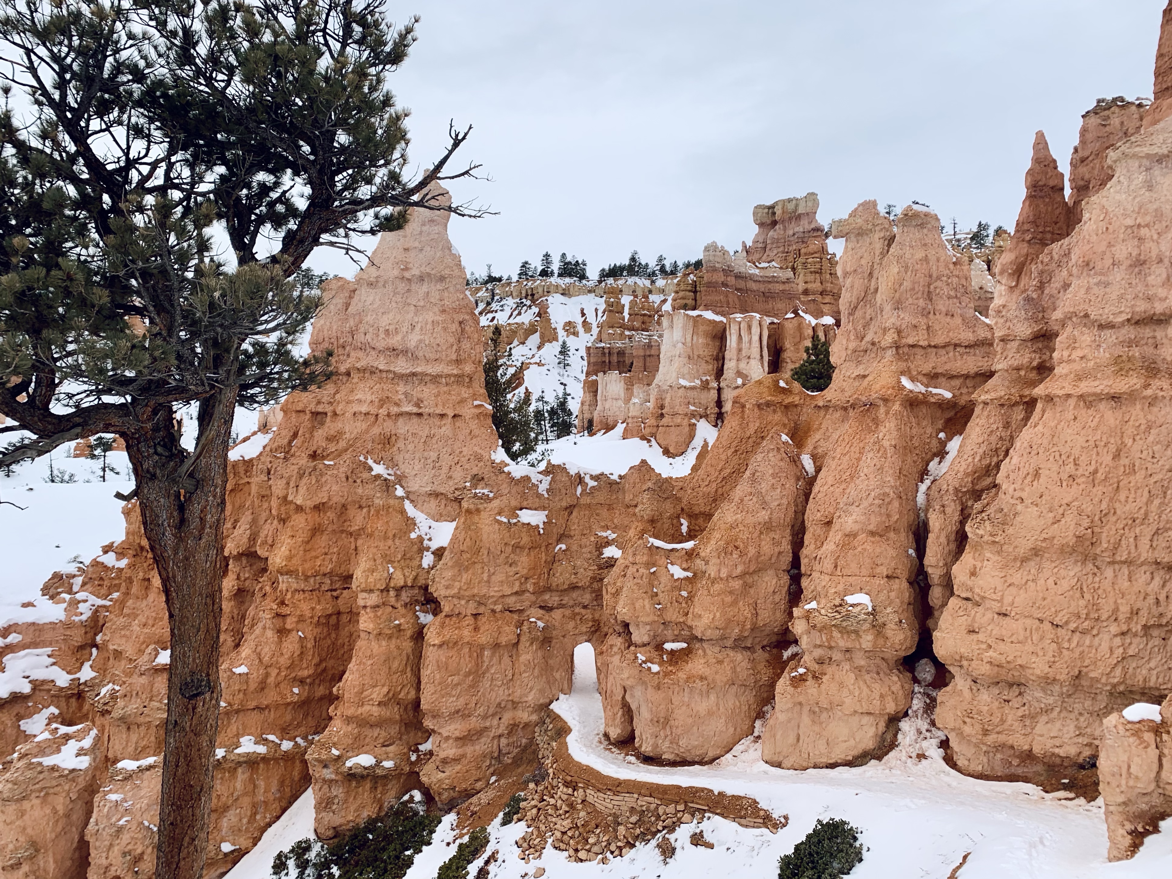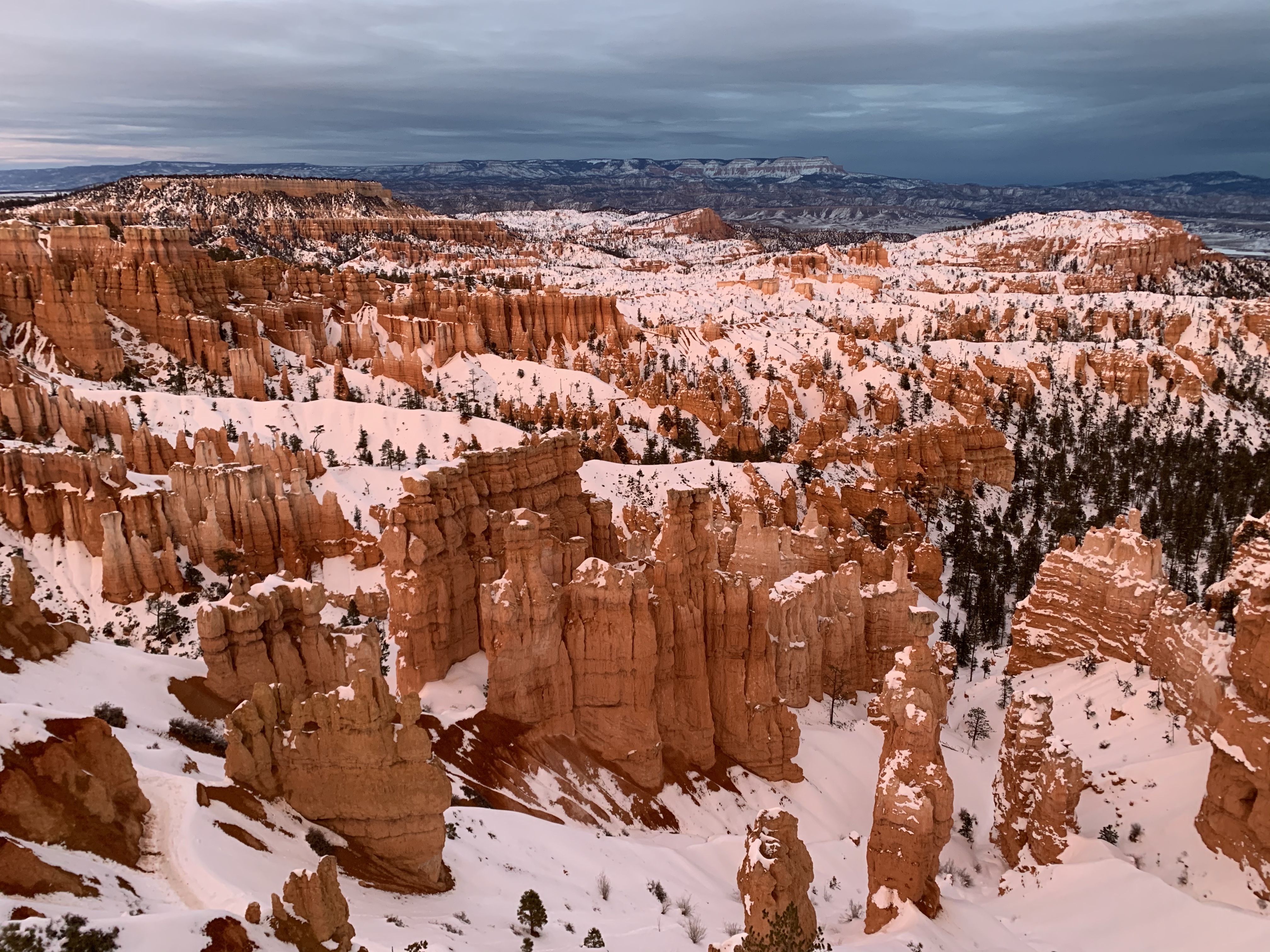 Today In Brief: A short collection from an enchanting hike among the hoodoos of Bryce Canyon National Park. This stunning trail began at Sunrise Point and descended steadily down into Queens Garden Trail, whereafter it looped south and then west up to the switchbacks of the iconic Wall Street. Ending at Sunset Point, the sun fell to the horizon behind me and lit the rocky beauties in gold and pink. A quiet photographer perched at Sunset Point, capturing the scene with a high-powered lens. An older woman enjoying the view shared that this was the exact point where her parents met. We three watched together as the lighting shifted over the canyon. As dusk gave way to night, we dispersed along the icy Rim Trail toward our respective cars, enthralled, at peace, happy-hearted.