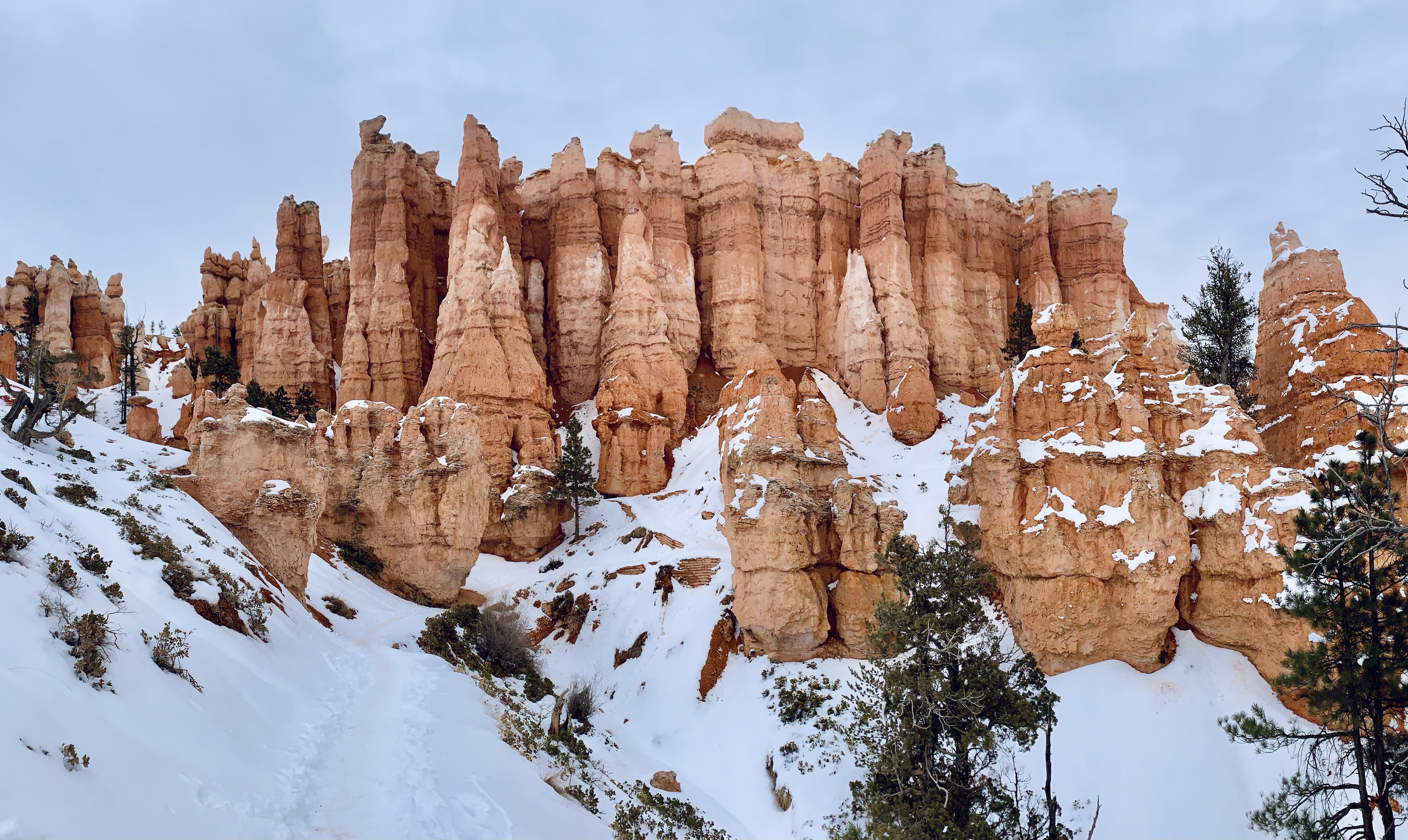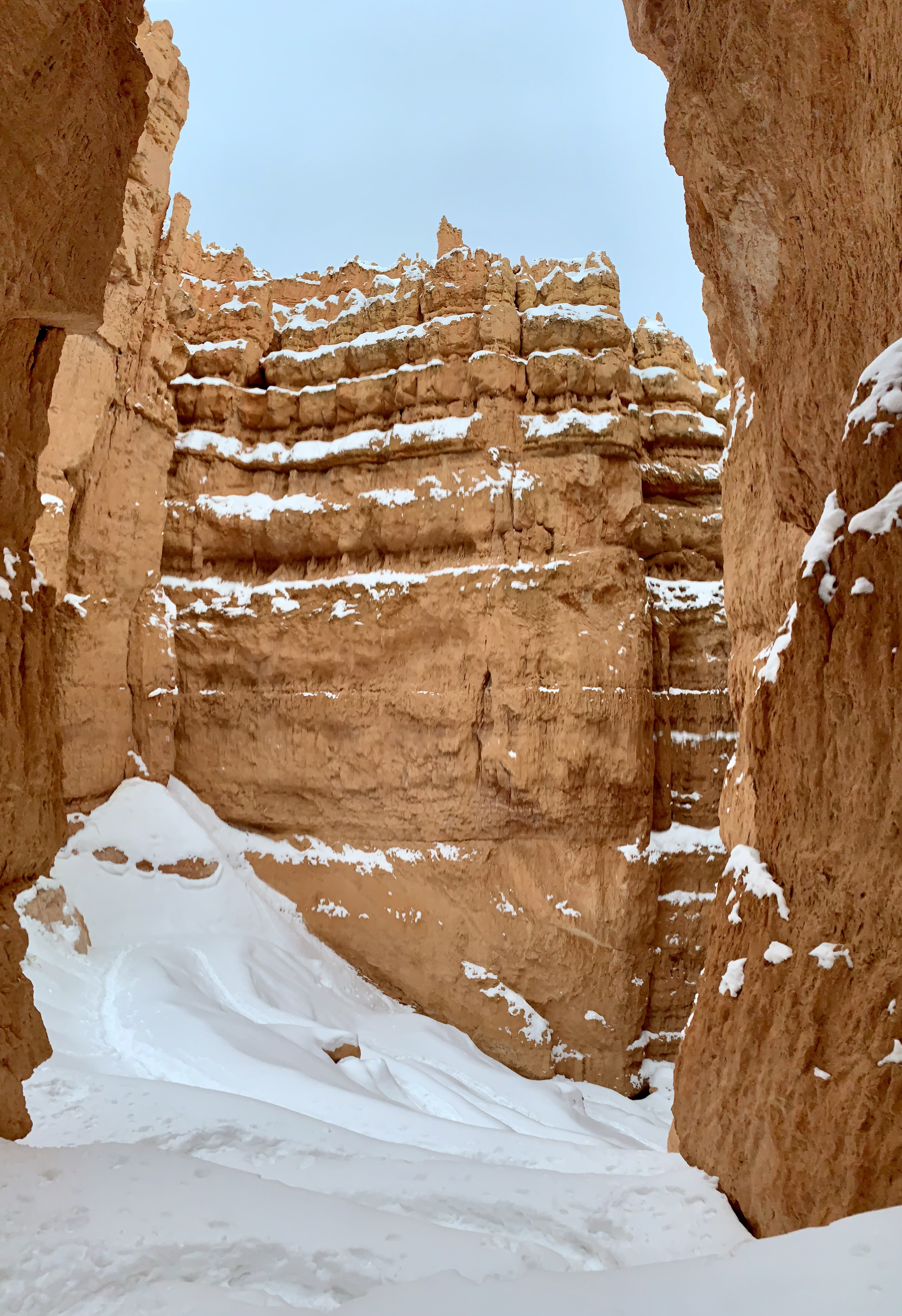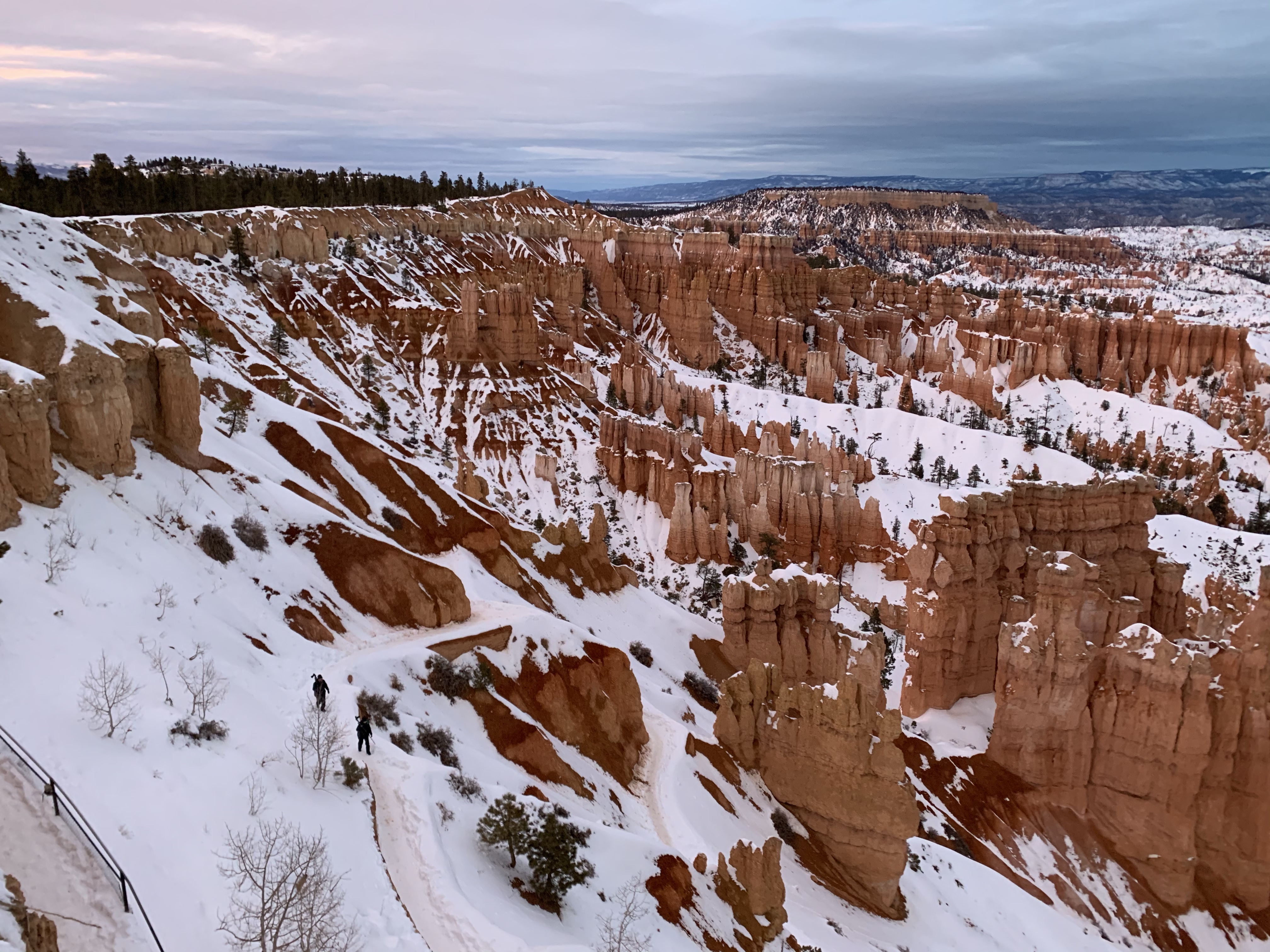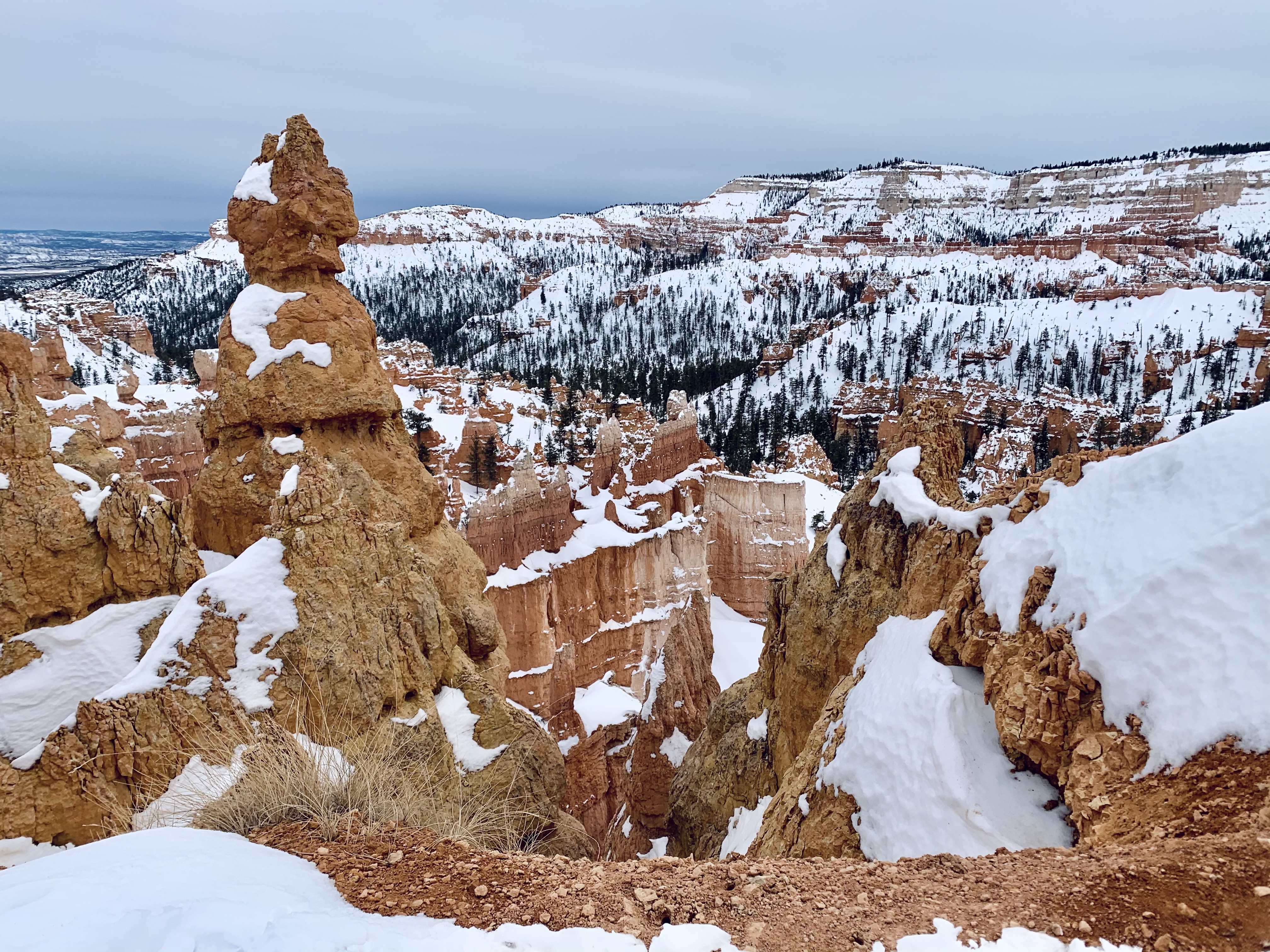 Today In Brief: A short collection from an enchanting hike among the hoodoos of Bryce Canyon National Park. This stunning trail began at Sunrise Point and descended steadily down into Queens Garden Trail, whereafter it looped south and then west up to the switchbacks of the iconic Wall Street. Ending at Sunset Point, the sun fell to the horizon behind me and lit the rocky beauties in gold and pink. A quiet photographer perched at Sunset Point, capturing the scene with a high-powered lens. An older woman enjoying the view shared that this was the exact point where her parents met. We three watched together as the lighting shifted over the canyon. As dusk gave way to night, we dispersed along the icy Rim Trail toward our respective cars, enthralled, at peace, happy-hearted.